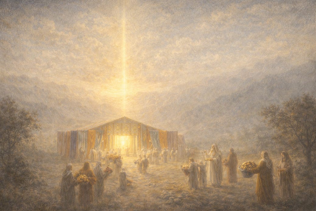 Le Tabernacle fut ainsi construit à partir du bien que chaque membre d’Israël possédait, ce qui correspond à (Exode 25:3-4) : « De l’or, de l’argent, du cuivre, étoffes d’azur, de la pourpre, de l’écarlate, etc. » – car chacun apporta selon l’aspect de bien qu’il possédait dans son coeur. En effet, l’or, l’argent, le cuivre, les étoffes d’azur, etc., représentent des Couleurs supérieures, qui symbolisent le bien qui se trouve en chaque membre d’Israël.
