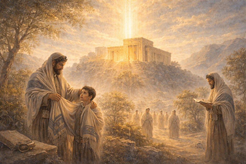 En se basant sur le concept du Tabernacle, on reçoit alors les enfants, dont les paroles sont exemptes de péché. Cela correspond à la lecture du Shema, comme il est écrit (Deutéronome 6:7) : « Tu les inculqueras à tes enfants… »3, et (Deutéronome 11:19) : « Enseignez à vos enfants, en les répétant… »4, car l’essence de la lecture du Shema est de clarifier le bien, comme cela a été mentionné précédemment.